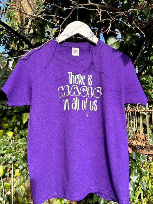 "There is MAGIC in all of us" purple slogan kids t-shirt
